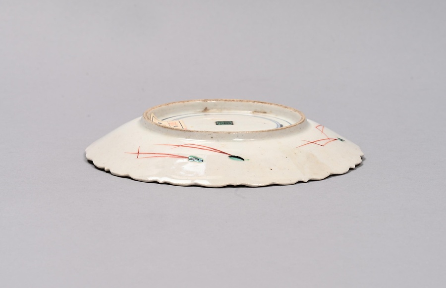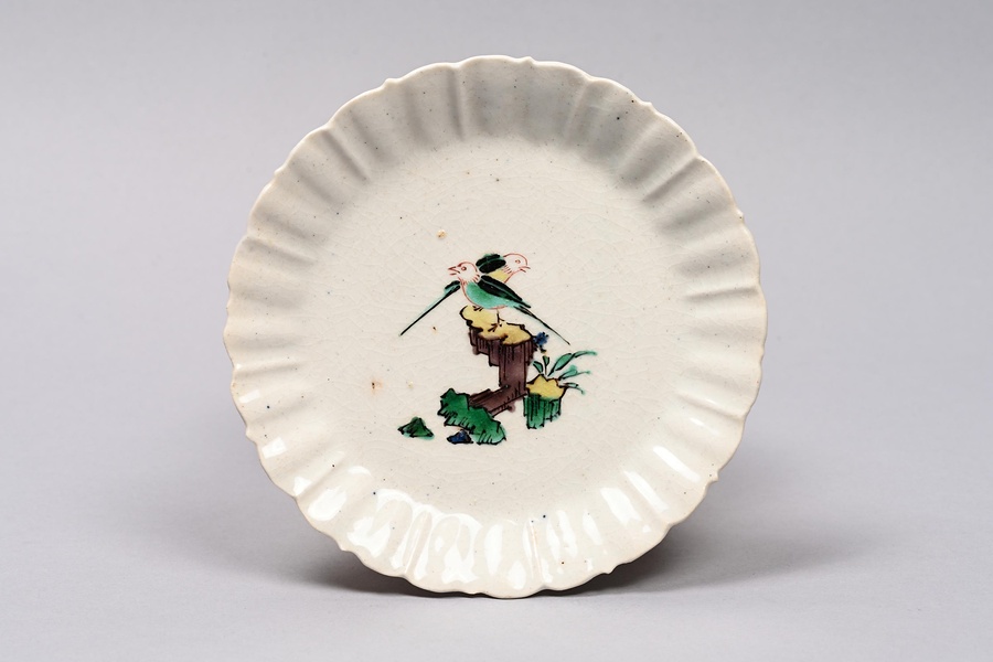色絵花鳥文輪花皿