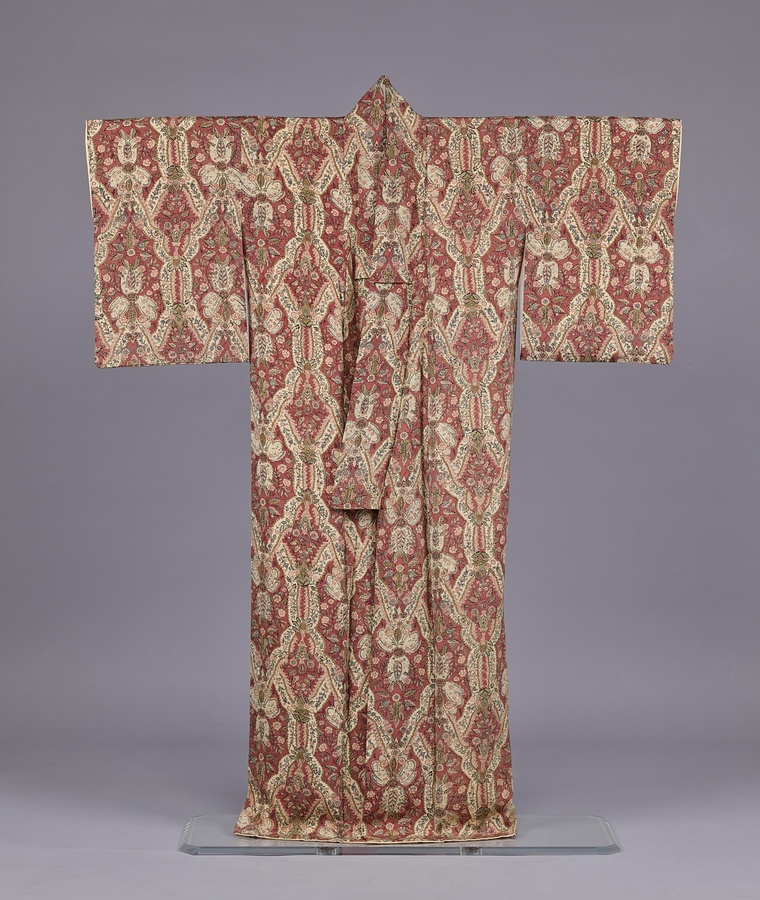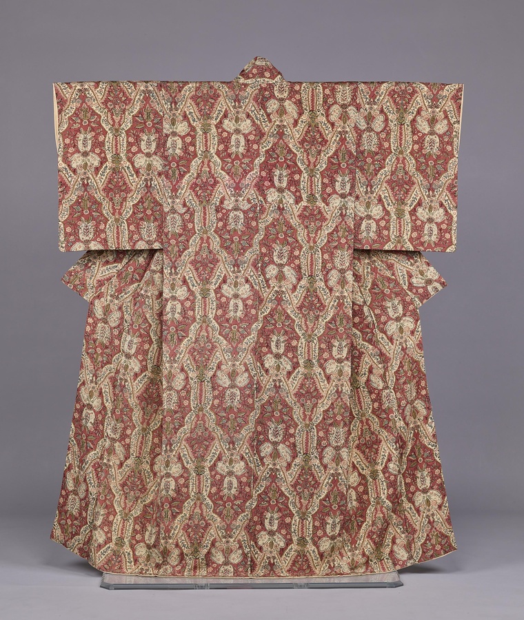 きもの あかちりめんじたてわくかちょうさらさもよう