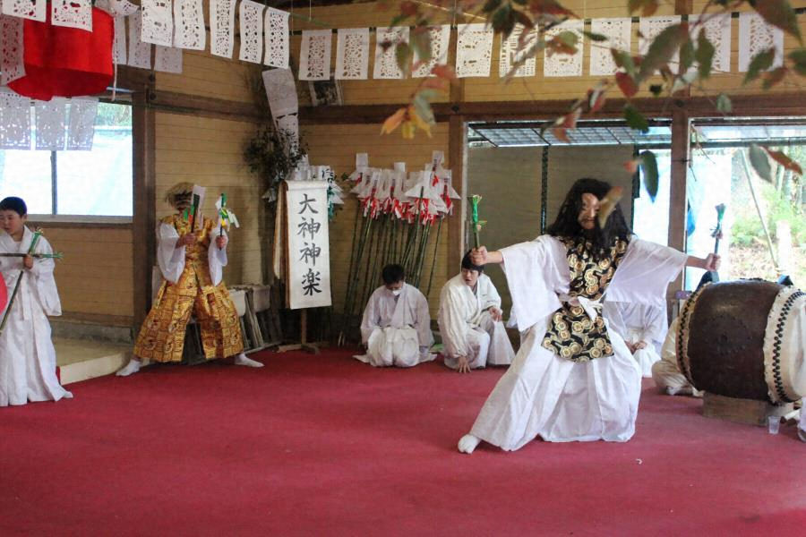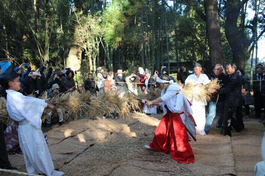 新田神楽は、新田神社の例大祭のほか、夏祭りや秋の新田地区の神社の祭りでも奉納される。毎年2月17日の例大祭は、早朝5時から夕方にかけて奉納され、主に五穀豊穣の予祝を行う。番付は33番継承されている。その中でも「神楽(綱切)」は真剣を使い、大蛇に見立てた大繩を一刀両断する。また、「大神神楽」は、薩摩から伝わったとされ、県北部や県北西部には見られない平野部の農村地帯独自の岩戸開きの演目である。保存会は、地元の小・中学校と連携を図りながら後継者育成及び青少年育成の場として地域と学校が一体となった神楽の保存・継承活動に努めている。