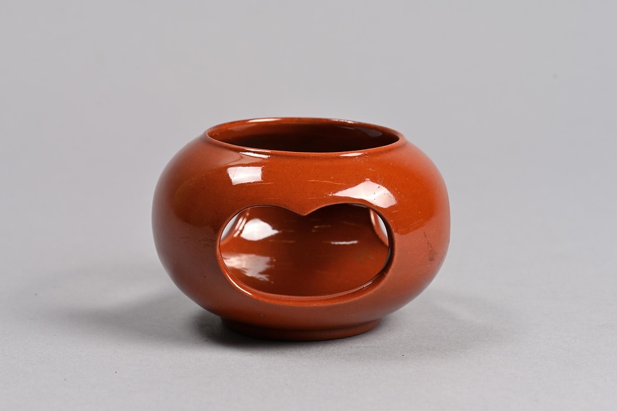 紅釉透彫盃台