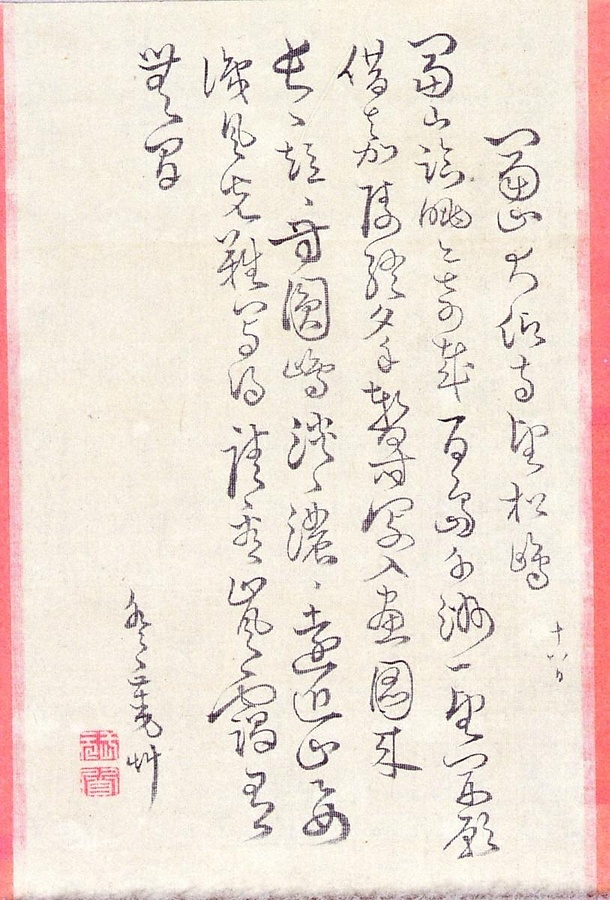 寛政12年(1800)6月18日の年紀のある「富山大仰寺望松嶋」の詩。大仰寺(だいぎょうじ、宮城県松島町)は、奥州三観音のひとつ。坂上田村麻呂(さかのうえのたむらまろ)がここに陣を構えたとされる。大仰寺からは、松島が一望できる。