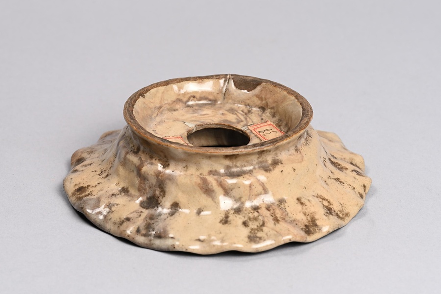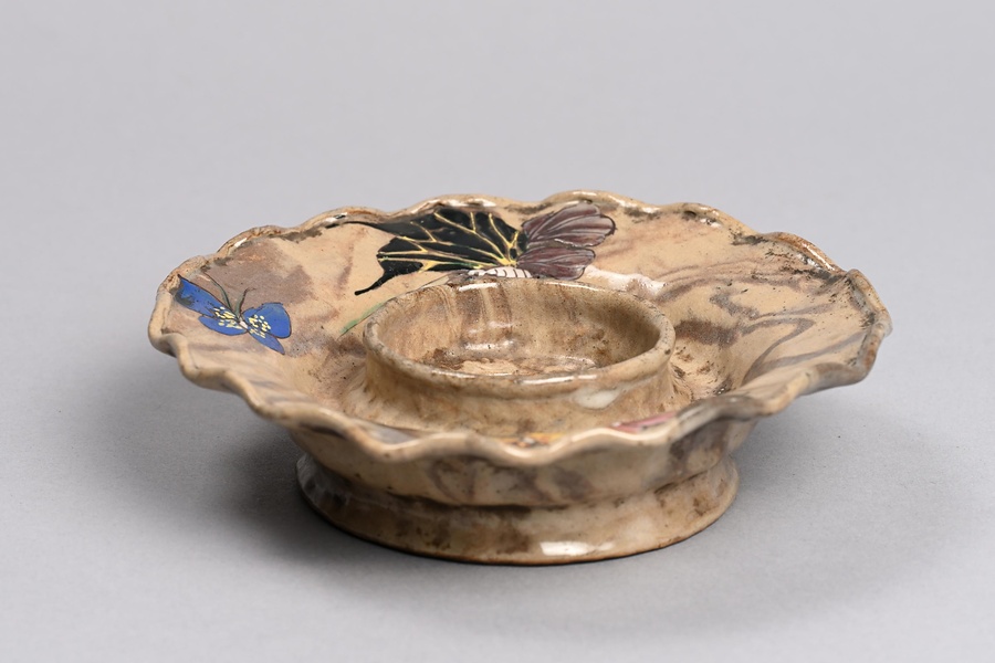 色絵蝶文練込輪花形盃台