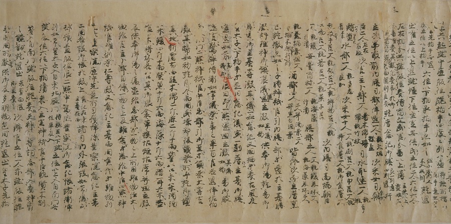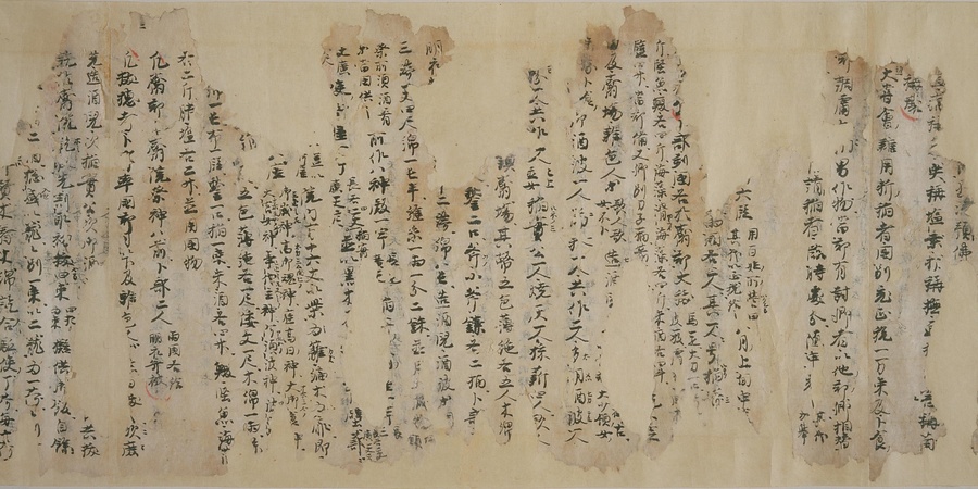 今回ご紹介する延喜式は、オリジナルを書き写した文章で、写本と呼ばれるものです。この写本は現存する中で最も古く、奈良・平安時代を通じて権力を握っていた藤原氏の一族である九条家に伝わりました。延喜式は全50巻で構成されていますが、そのうちの27巻が残っており、1巻を除くすべてが平安時代の後期に書き写されたものです。