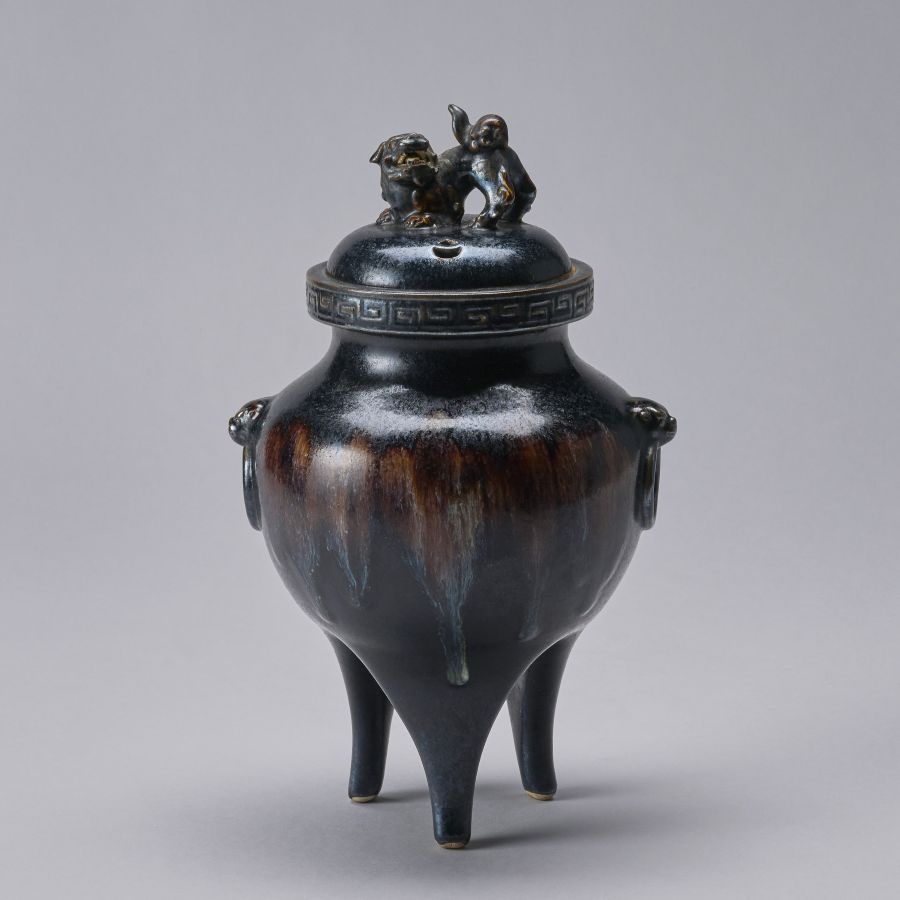 黒釉玉流獅子乗香炉