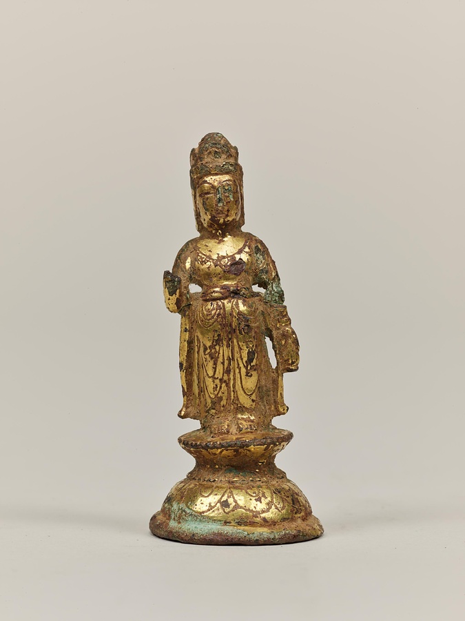 この6件は、いずれも統一新羅時代に製作された金銅仏である。このような小像は、個人の念持仏や石塔への奉納などに用いたと考えられる。中国の隋から唐時代の影響を受けながらも、背面に「はばき」と呼ばれる孔を設けるなど、独自の技法や造形がみられる。