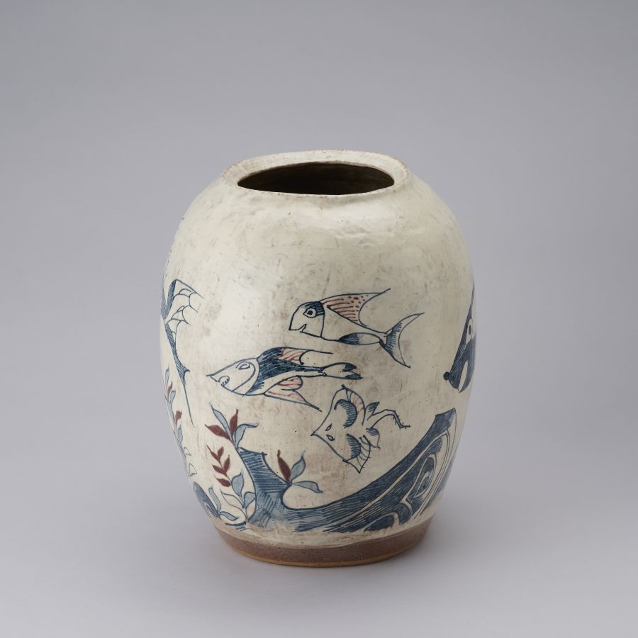 呉須辰砂魚文扁壺
