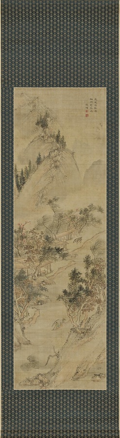 載菊舟行図軸