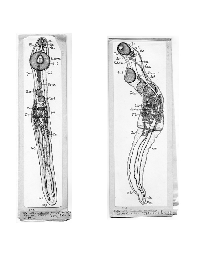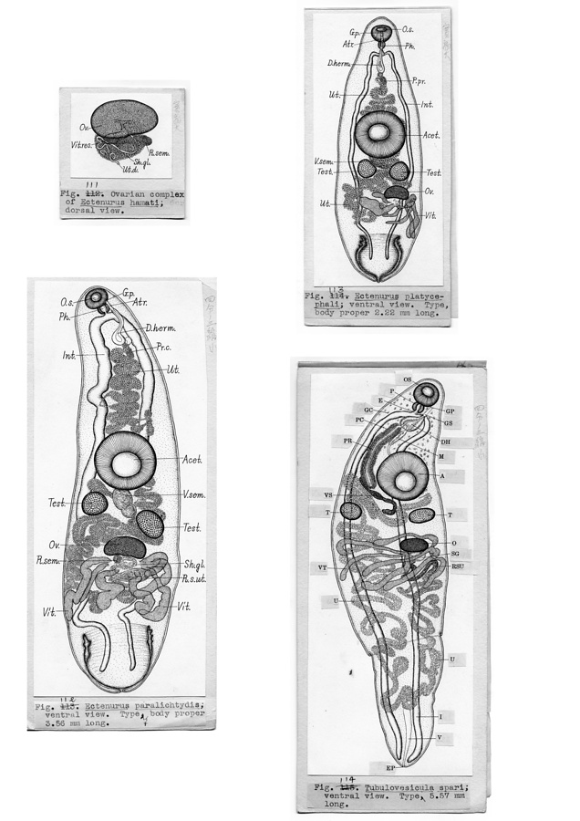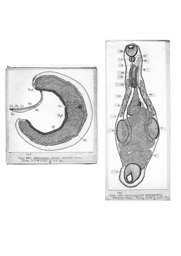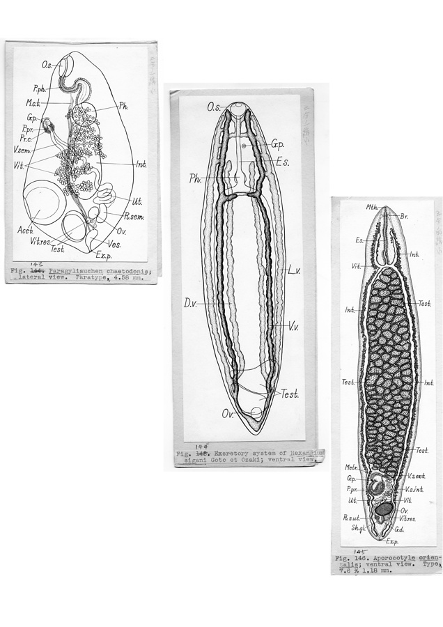 日本の寄生蠕虫相の研究,第2部.魚類の吸虫類.原図3/3(部分)