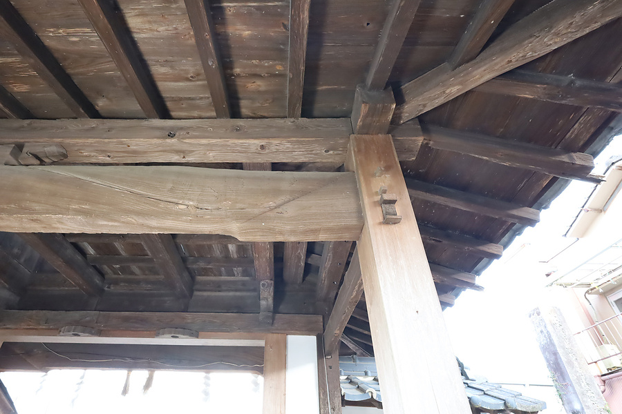 境内北端、通りに面して建つ二重門。入母屋造桟瓦葺で、扉口を棟筋より前面に寄せ、上層の正背面に火灯窓を開け、側廻の柱間に菱格子を建て、周囲に擬宝珠高欄付縁を廻らす。組物は大斗肘木、軒は一軒繁垂木。絵様など古式で境内の表構えをつくる鐘楼門。