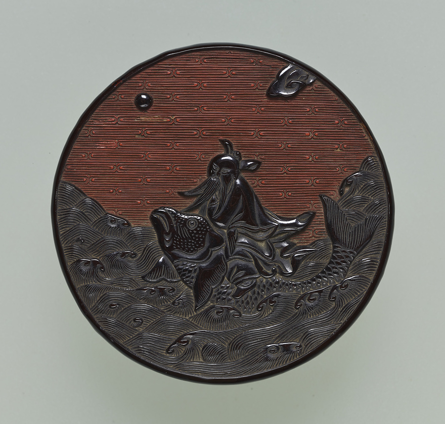 狭貫彫堆黒松ヶ浦香合(忘貝香合)隠し彫「松」「波」「天」(象谷作/嘉永四年三月上納)
