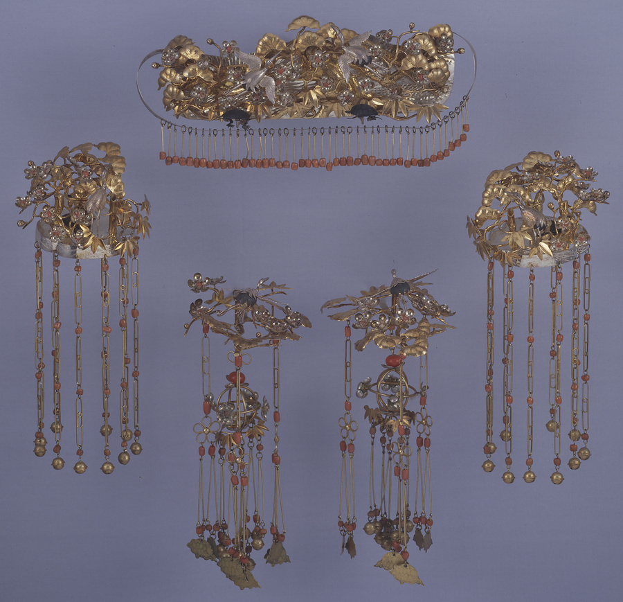 松竹梅鶴亀金銀珊瑚造りびらびら簪