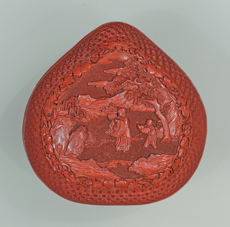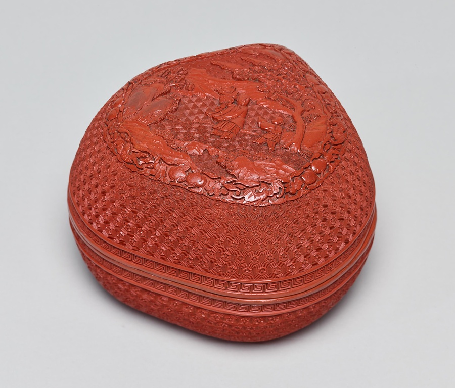 山水人物堆朱桃形合子