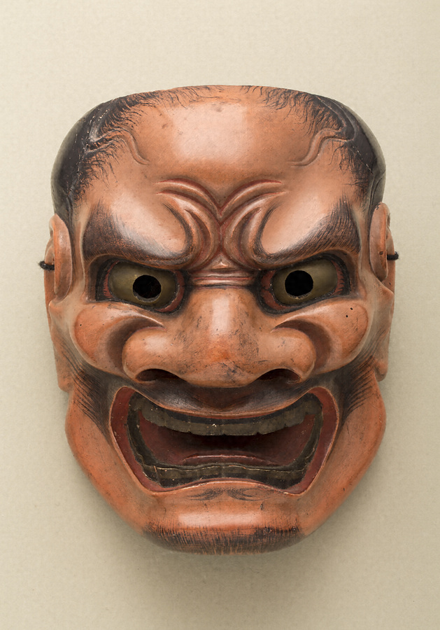 「顰」は人間に敵対する鬼の役に用いる。額や眉間に刻まれた皺は凶悪な相を示し、目や歯の金色は異界の存在を表す。顰の面をかける役は人間に退治される運命を負い、その表情には哀れさも感じられる。この面は「大顰」の名称で伝わっており、引き締まった常の顰面と比べて表情のスケールが大きいことを特徴としている。