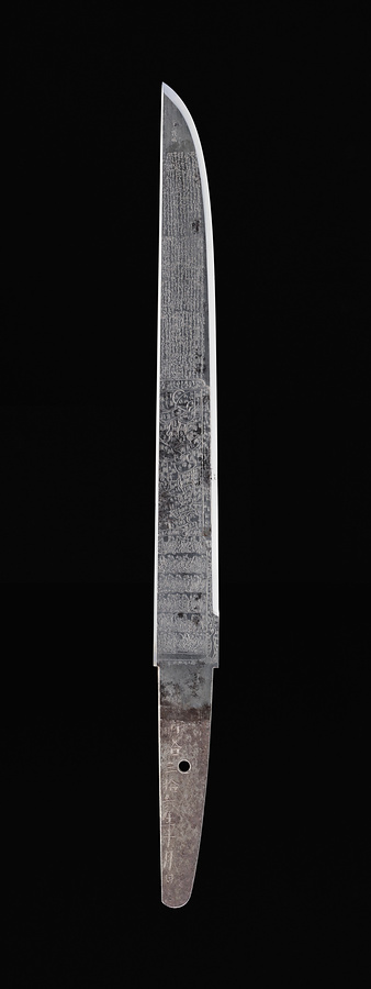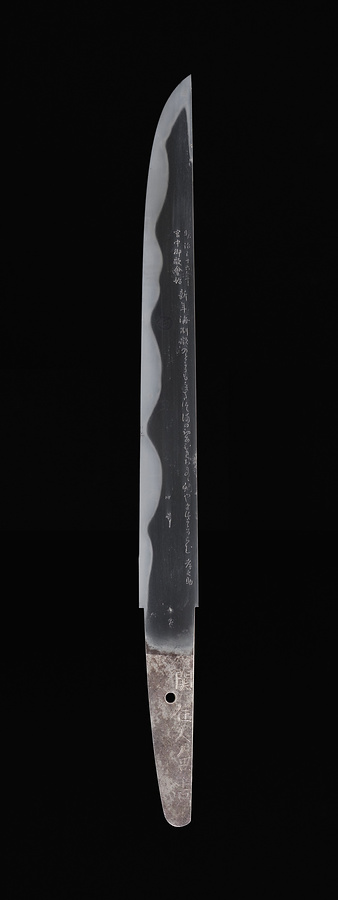 片切刃造、庵棟、指表は打ち寄せる波のような濤乱刃を焼き、棟寄りに「明治三十六年/宮中御歌會始/新年海制歌 のとかにも年たつ浦のはつあひきおものの鯛やまつかかるらむ 孝之助」、一方指裏には鋒より「三十六歌仙」の字句を刻み、続いて全36首を上段11首、中段13首、下段12首の計3段に渡って刻し、さらにその下に上辺右を入隅形にした枠を設け、枠内に各歌人の名前と肖像をあらわす。区間に彫金師銘「彫工河田秋幸」、茎の指表に刀工銘「関住人兼吉」、指裏に紀年銘「明治三拾六年十月日」をそれぞれ刻む。なお、指表の一首は明治36年(1903)1月19日に宮中で催された歌会始で詠まれた撰歌であることから、本品は歌会始の詠進者自身が記念して地元の著名な刀工に制作を依頼したものと考えられる。