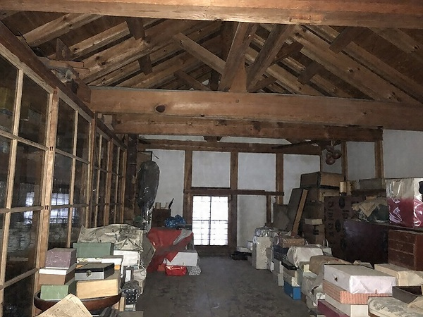 願成寺門前通り南端に所在し、屋敷北西角に位置する土蔵。主屋と渡廊下で繋がり家財蔵として使う。切妻造桟瓦葺、土蔵造二階建で腰を石張とし、入口に掛子塗扉、小屋はトラス組。妻面に屋号と楣を構える長大な片開き塗戸が当家の象徴として町並みに映える。