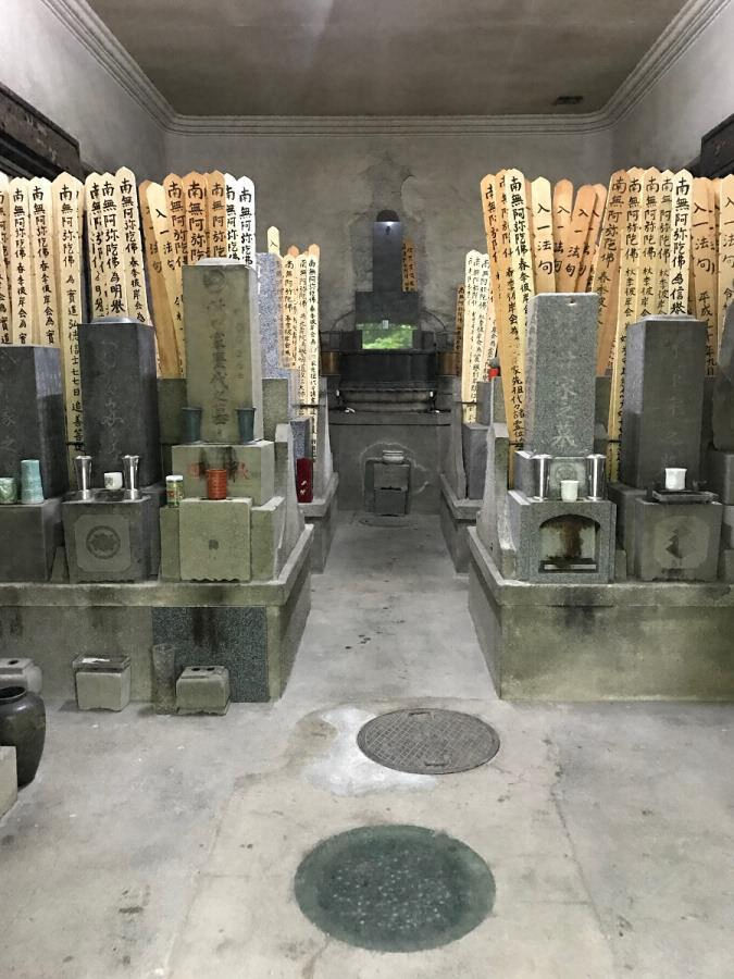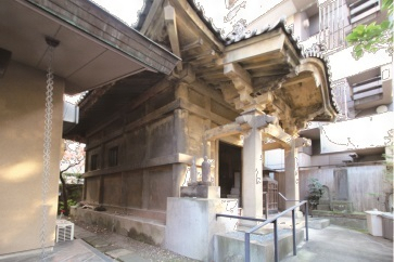 増上寺の東に位置する寺院の納骨堂。鉄筋コンクリート造、入母屋造桟瓦葺妻入、主体部は太い円柱に長押を廻して花頭窓を設け、唐破風の向拝は角柱で虹梁や蟇股で飾る。内部は一室で地下に納骨棚を備える。重厚な意匠の近代仏堂で、山内寺院の景観を整える。