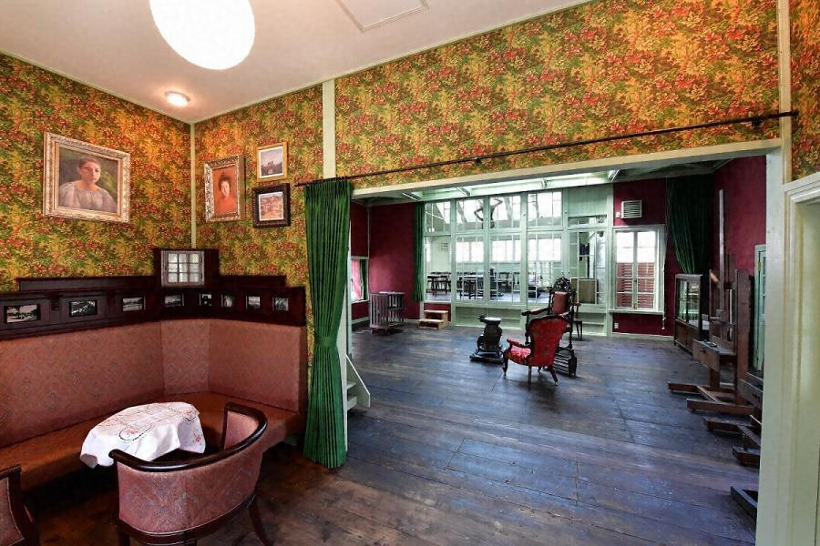 佐賀城内に移築した岡田三郎助のアトリエ。木造平屋一部二階建、金属板葺で、アトリエと女子洋画研究所からなる。内部は安定した採光を確保するため、随所に窓を穿つ。画壇の中心的サロンとなった明治期のアトリエで、初期女性洋画家教育施設としても貴重。