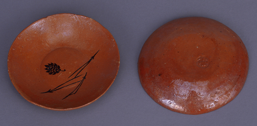 鴻池家伝来永楽関係資料 赤楽釉松笠松葉文土器皿