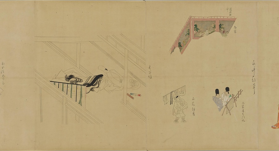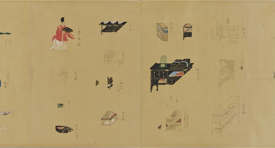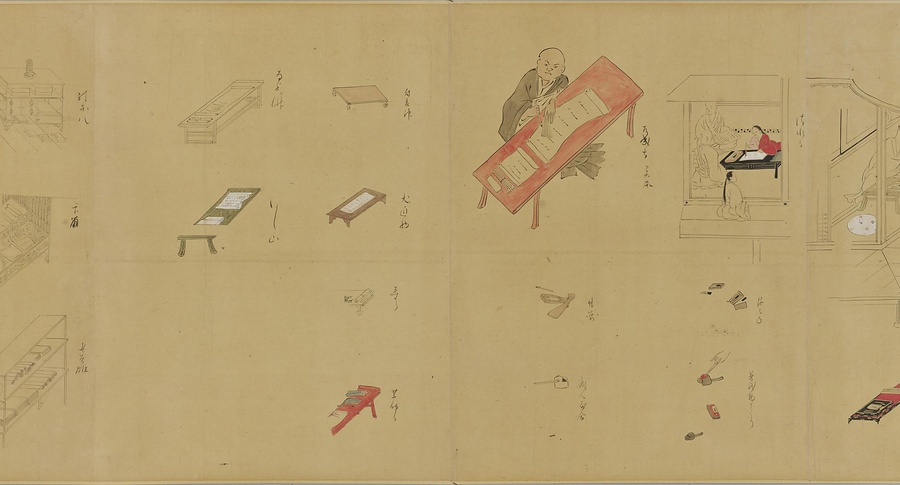 紙本著色、巻子