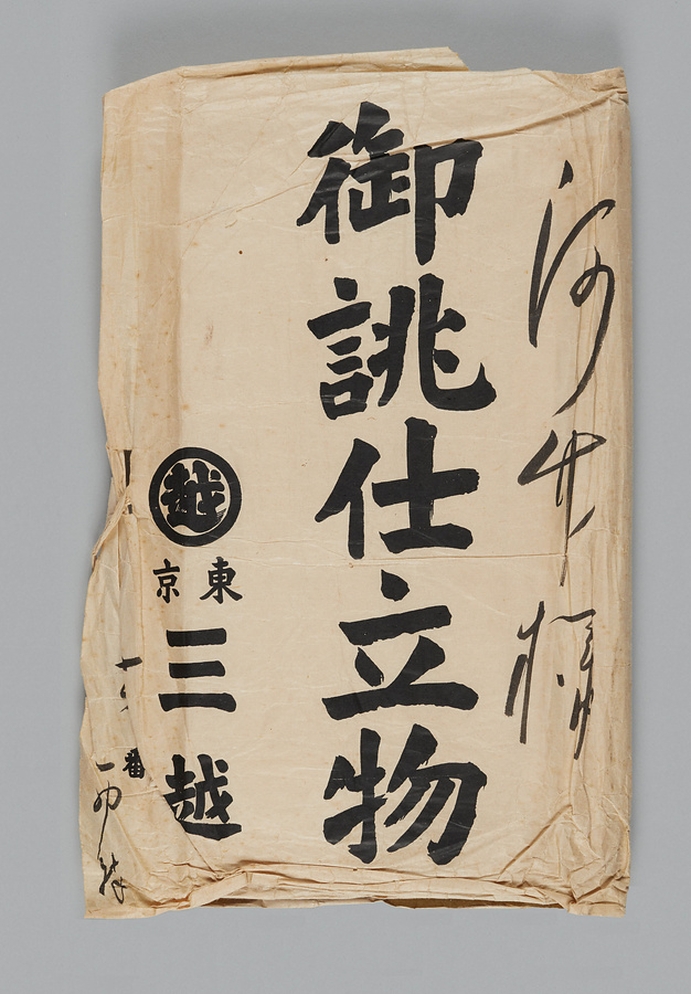 明治17年(1884)に黙阿弥が亡父・勘兵衛の五十年忌法要に際し、柴田是真の下絵をもとに堀田原の竺仙で染めさせ、五十年忌と白浪作者にちなむ「五十の浪」と名づけて門弟等に配ったもの。残った一反は糸が河竹繁俊のために仕立てさせたという。大正12年(1923)の大震災の際、火の粉を避けて一家は逃げ出したが、三日後に繁俊が奇跡的に焼失をまぬがれた箪笥の中からこの浴衣地を見つけ出し、大正14年(1925)、「五十の浪」を表紙に印刷した『黙阿弥全集』が発行された。