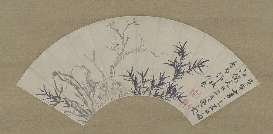 枯柯竹石図扇面