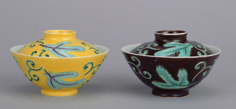 鴻池家伝来永楽関係資料 交趾釉松唐草文蓋茶碗(紫)