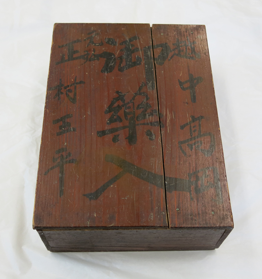 箱蓋表に墨書「越中高岡/御薬入/元弘(弘は「始」カ)/正村五平」あり。