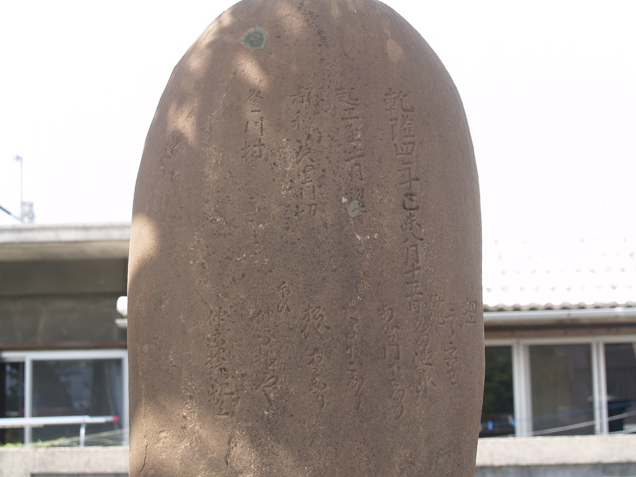 石碑の表側に乾隆4(1739)年に登川村が池原村から分離して現在地に移転した事と、事業にかかわった人々の屋号と名前が記されています。