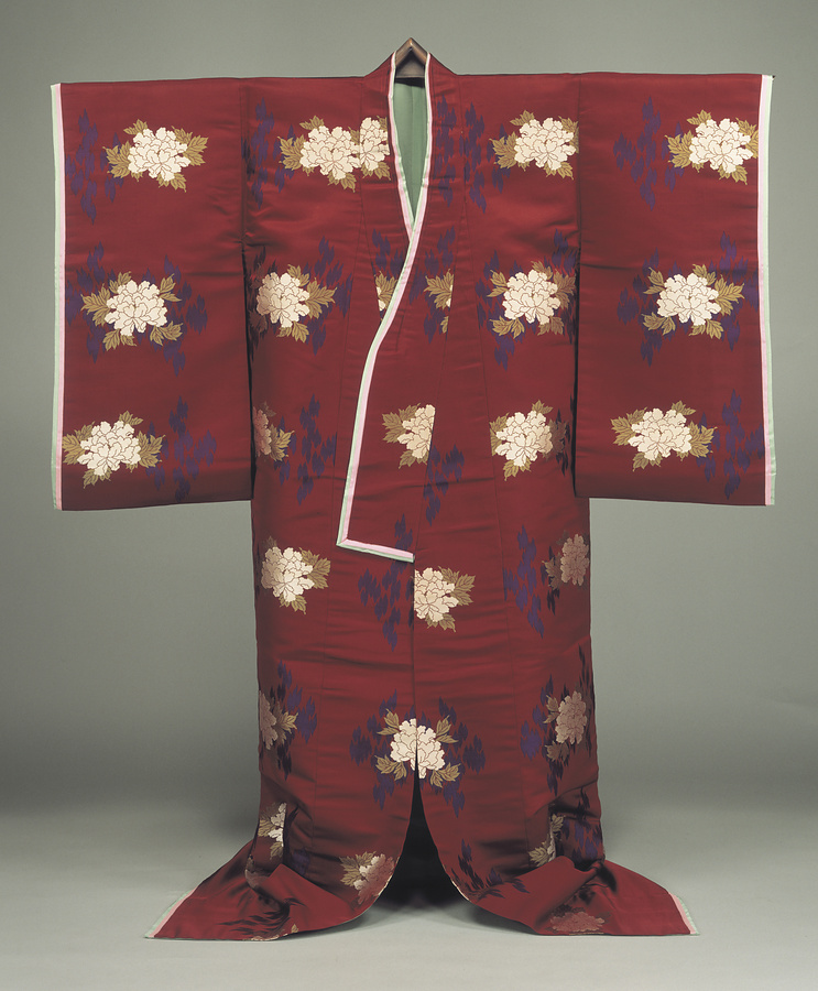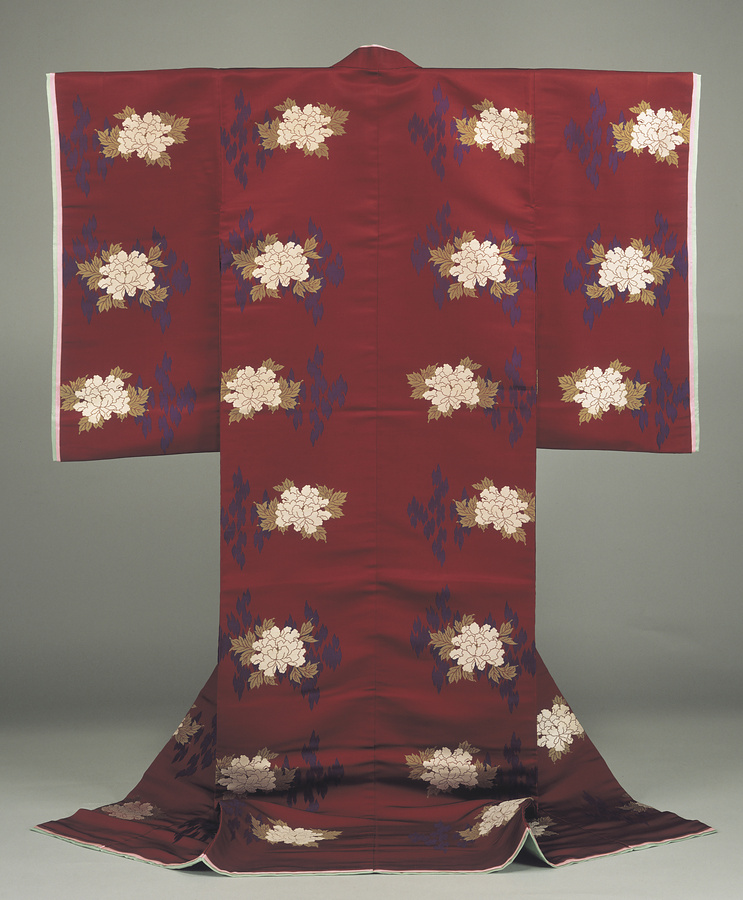袿 蘇芳地朽木牡丹模様縫取織をもっと見る
