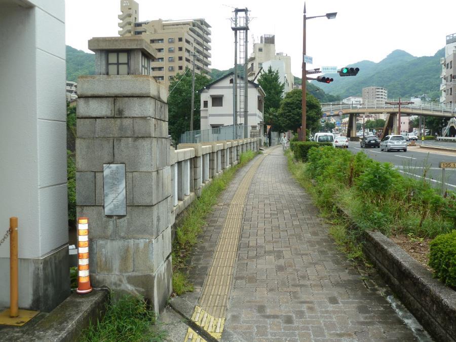 国道34号の鉄筋コンクリート橋で、中島川の一之橋下流側にかかる。川筋に対し大きく斜行し、橋長が上下流で異なる形状をライズの低い楕円形アーチでまとめる。単純な意匠の親柱と高欄が優雅な印象を強調している。一の橋と同じく、長崎の近代化を物語る。
