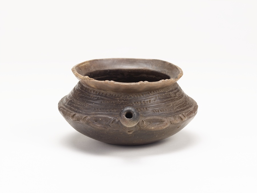 縄文時代晩期の東北地方を中心に分布する亀ヶ岡文化の土器。羊歯状文や光沢ある表面研磨が特徴的である。亀ヶ岡文化では、亀ヶ岡式土器(大洞式土器)や遮光器土偶で知られるように精巧な作りの土器、土製品、石製品などが多数製作されたが、本品はその特徴をよく示す土器である。