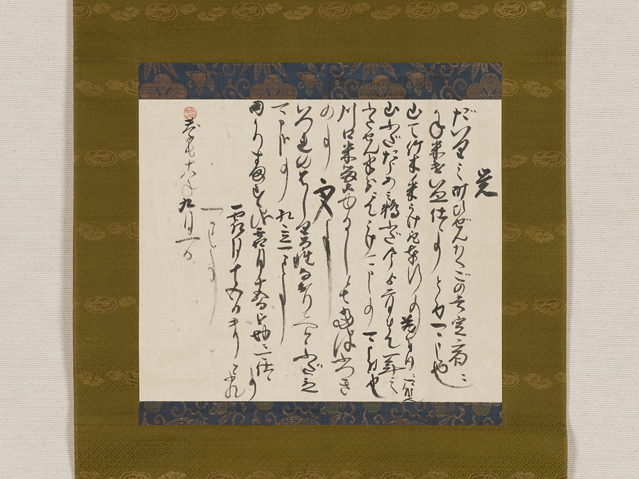 小倉藩主・細川忠興の裁可を仰ぐために家臣が上申事項6件を事書きした「覚」に、忠興が自らの判断を指示したもの。2-13行目にかけて6か条の事書きと裁可からなる本文を記す。4・5・7・9・11行目の行頭には一つ書「一」があったが、料紙の上辺が断たれ欠失する。14行目に年月日を書し、その行頭にローマ字朱印を押す。
