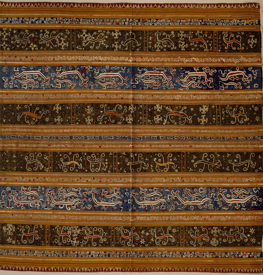 縞絣地花鳥獣文様ミラー刺繍腰衣