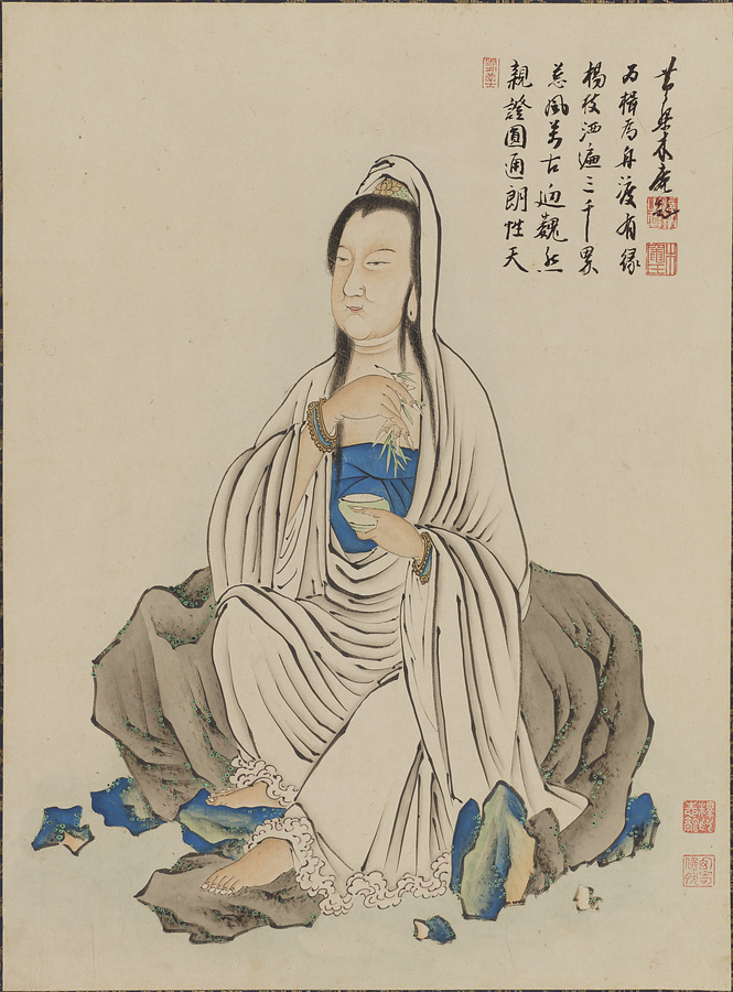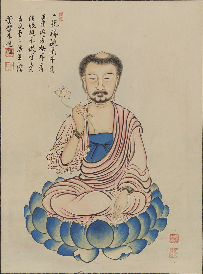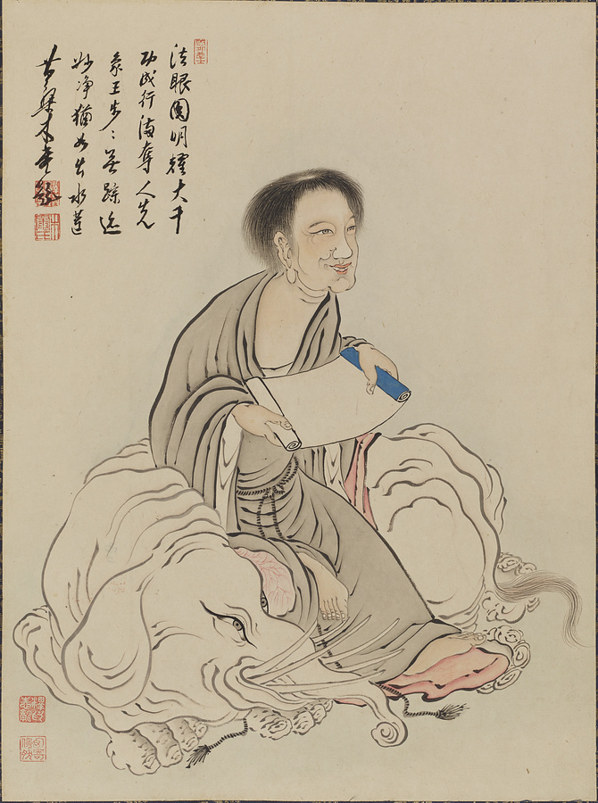釈迦、文殊、普賢、観音、勢至のほか、インドおよび中国の禅宗の祖師33名を加えた計38名の姿を描く。黄檗宗の開祖・隠元隆琦の序文と、その弟子・木庵性瑫による題賛および跋文が備わる。本作は、隠元の来日に尽力し、長崎・興福寺住持も務めた中国出身の逸然性融が、京都・萬福寺に伝わる陳賢筆「列祖図冊」を忠実に模写したもの。隠元は、本作が描かれた翌年、70人の祖師の事績と肖像画を集成した『仏祖像賛』を刊行しており、そこに収載された祖師像は本作および陳賢本とほぼ同図様を示すなど、強い影響関係がうかがわれる。本作は、黄檗における列祖図の決定版ともいえる『仏祖像賛』成立にも大きく関わる意義深い作例である。
