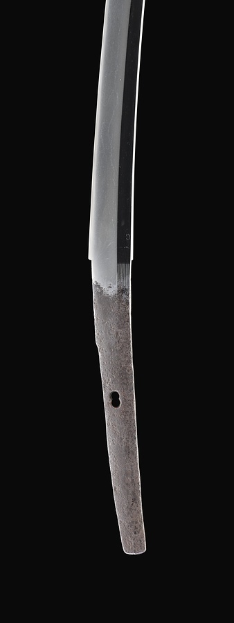 鎬造、小鋒。腰反強く踏ん張りあり。鍛は小板目流れて柾交じり、地沸細かにつく。刃文は小沸出来で細直刃、物打やや上で焼き深く小乱となり沸強くなる。帽子は浅く湾れて小丸に浅く返る。佩表の腰元に梵字を刻む。茎は生で目釘孔1つ開く。定秀は豊後最古の在銘刀工で、平安時代末期から鎌倉時代初期にかけて作刀を行い、名工として名高い行平の師としても知られる。定秀は、中近世の刀剣書や銘尽などでは「彦山三千坊の学頭」として評され、豊前豊後の両国にまたがってそびえる霊峰英彦山(彦山)ともゆかりが深い。行平は鎺元を焼き落としとする作例が多いなか、本品の場合は焼出しが区際となるのがやや異例である。また、物打付近に矢や刀を受けた際についたと思われる誉疵がある点が珍しく貴重である。