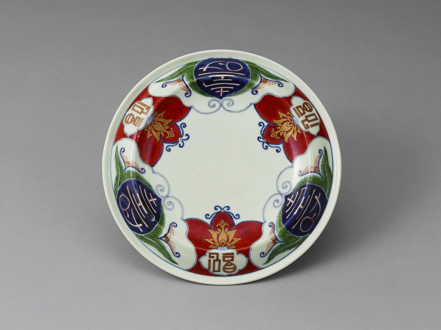 色絵唐花福寿文反皿