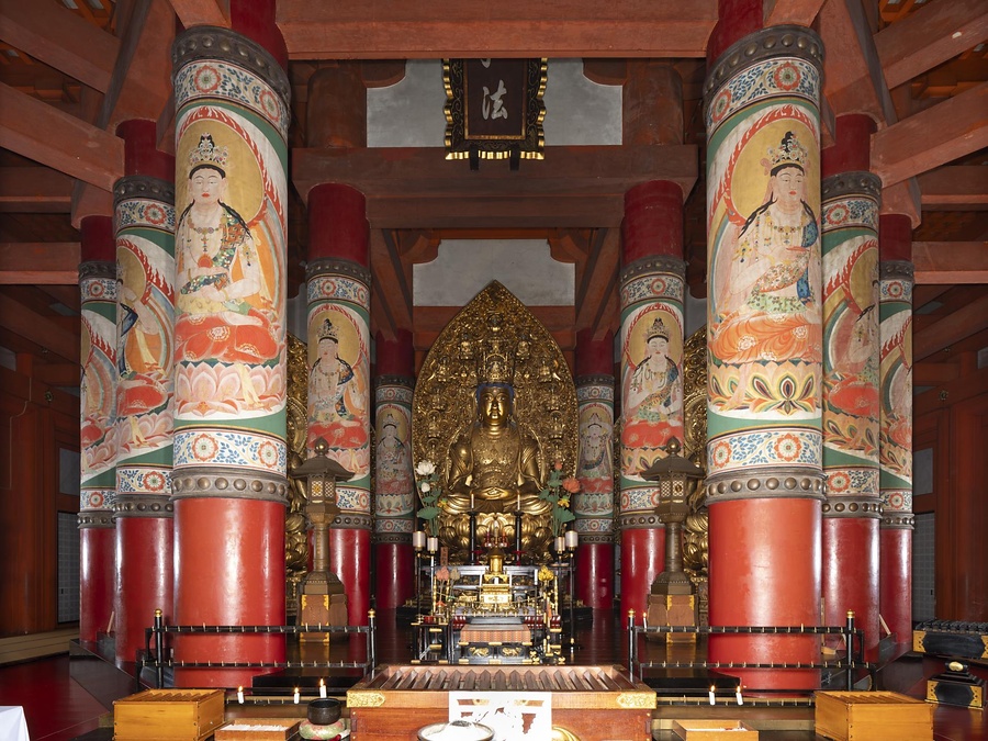 高野山開創以来、1200年以上にわたり連綿と保持されてきた金剛峯寺壇上伽藍の中核をなす堂塔。金堂は昭和7年の再建。設計は建築家武田五一と建築史家天沼俊一。耐火のため鉄骨鉄筋コンクリート造とした主体部を木部で覆い、伝統的な木造寺院建築にみせる先駆的な大規模堂宇で、天沼による造形は様々な時代の意匠を折衷する。根本大塔は大型の多宝塔で、昭和12年の再建。武田と天沼による設計。文献や礎石の実測から創建時の姿を目指した先進的な復元建物。鉄骨鉄筋コンクリート造に木造を取り合わせて伝統的な形姿に整え、高さ48mに及ぶ巨大な駆体を実現した構法は、金堂をさらに洗練させたもので、高い技術力が認められる。