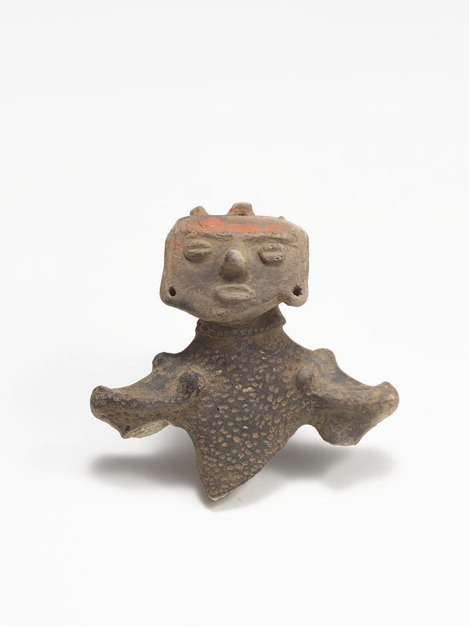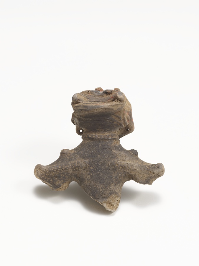 縄文時代晩期の東北から北海道南西部にかけて分布する亀ヶ岡文化の土偶である。亀ヶ岡文化の土偶は肥大化した眼部表現を持つ遮光器土偶がよく知られているが、小さな目や人間らしい顔つきを持つ本品は遮光器土偶が型式変化により眼部が縮小化した時期のものである。仮面を身に着けたような扁平な顔面、髪結いと髪飾り風の表現を持つ頭部、首飾りのような刺突文のある隆帯を廻らせた頸部、動物の毛皮風の衣装を想像させる刺突文を有する体部など、縄文時代の装いの様子を具体的に知ことができる資料である。