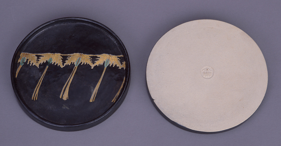 鴻池家伝来永楽関係資料 黒地金彩注連縄文菓子皿