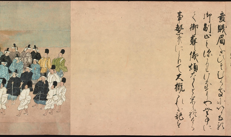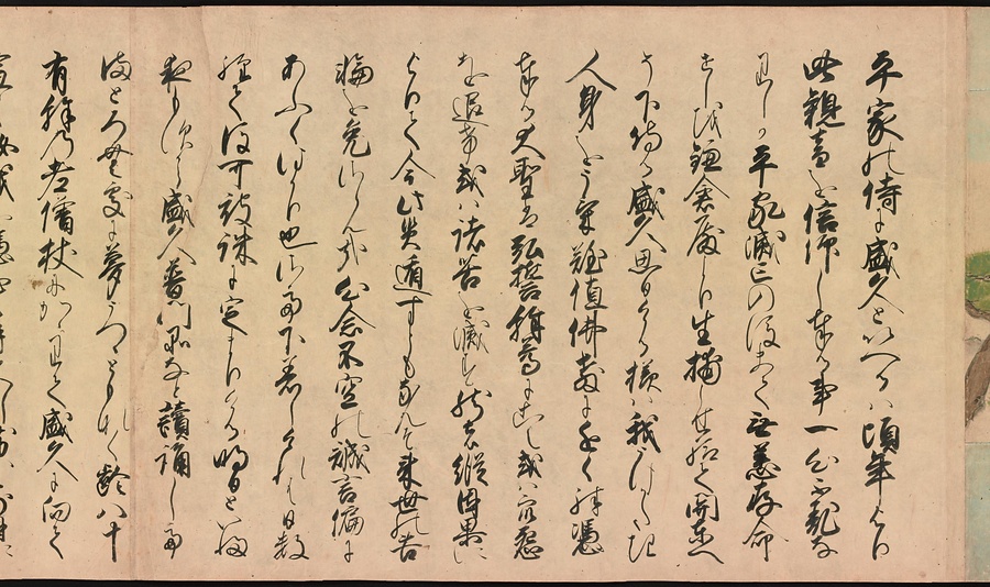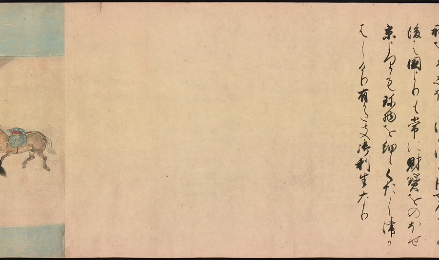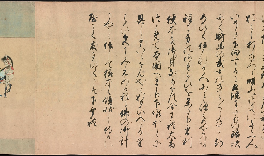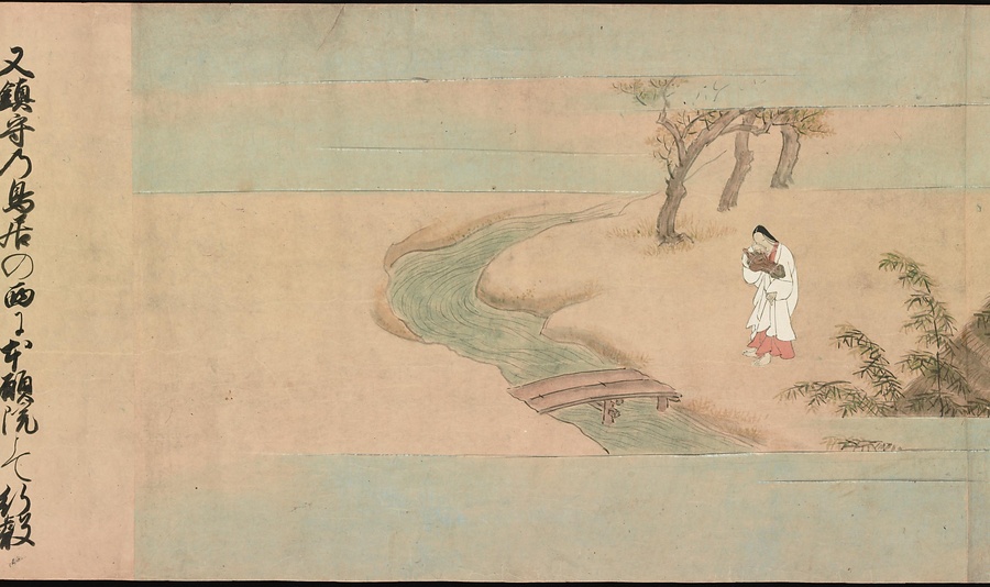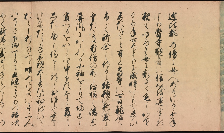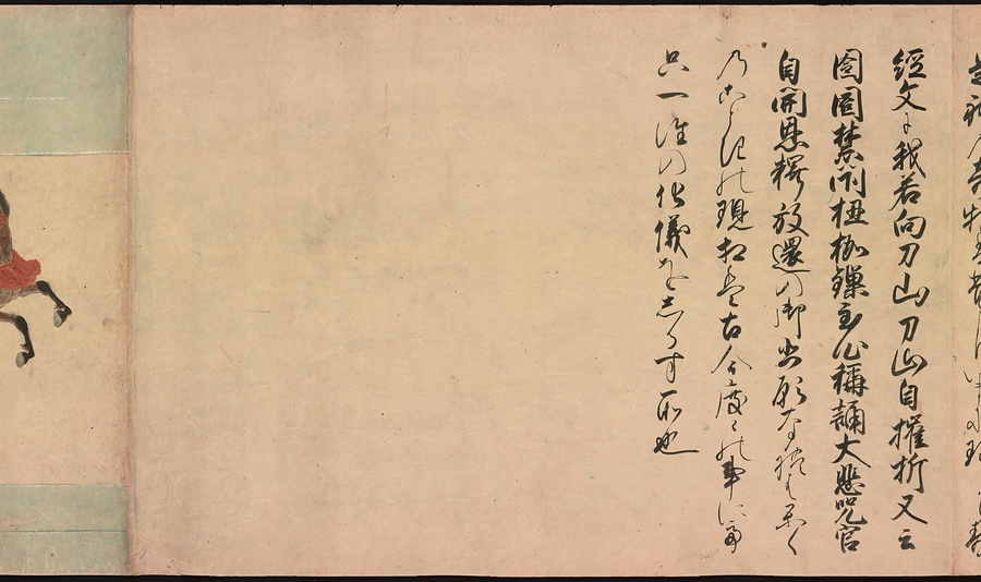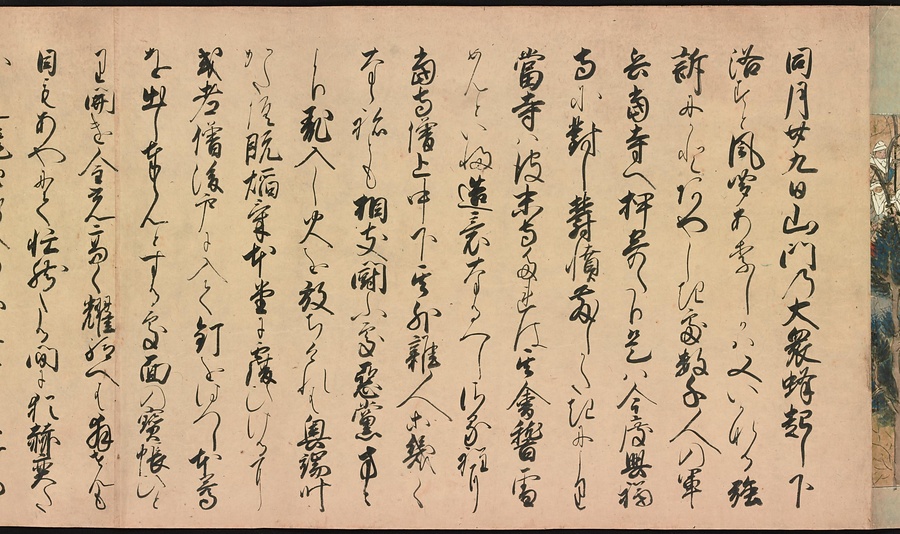 京都の清水寺の始まりとその本尊千手観音のご利益を描いた絵巻です。全部で三巻ありますが、今回展示している下巻には、本尊をめぐる霊験あらたかな物語が描かれています。時期によって展示される場面が異なることがありますが、冒頭からご紹介します。