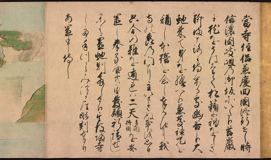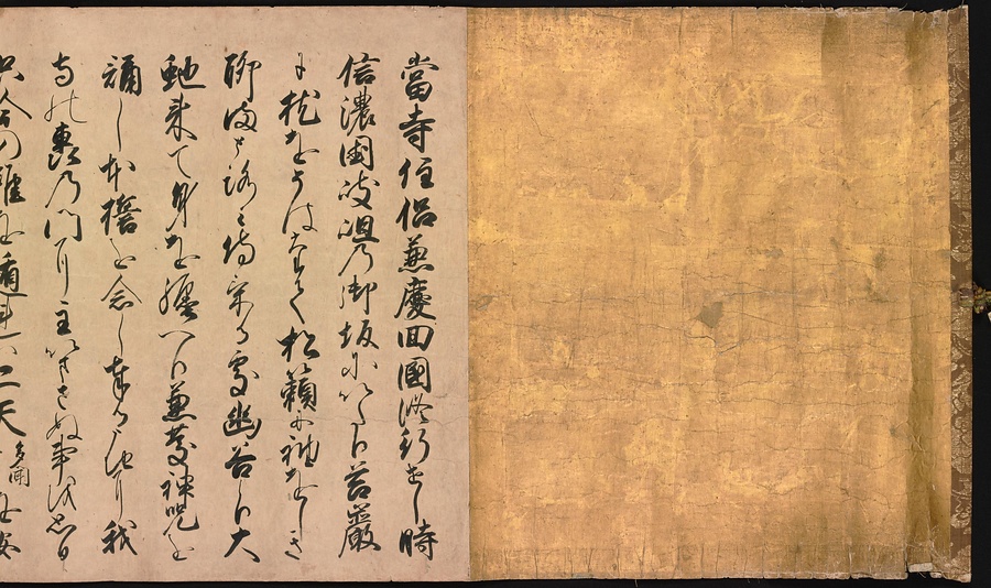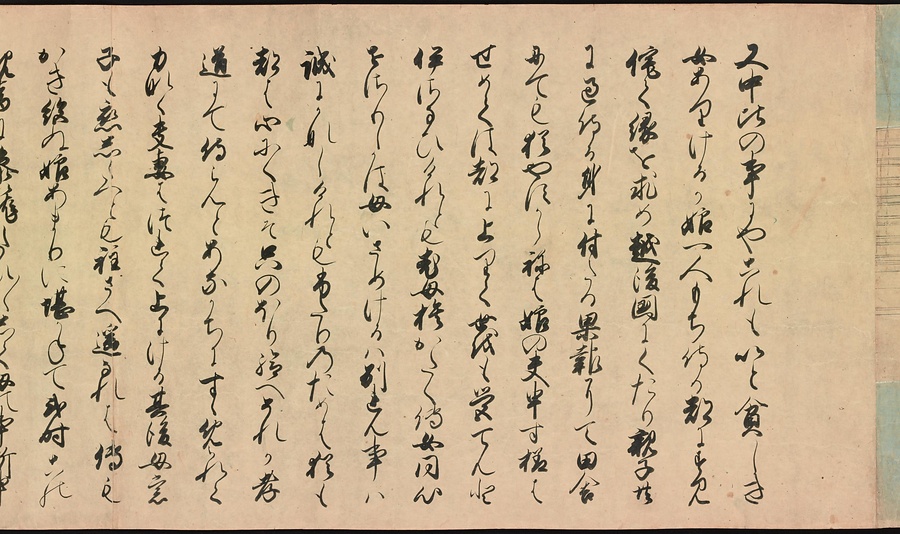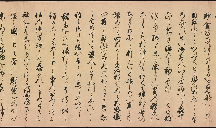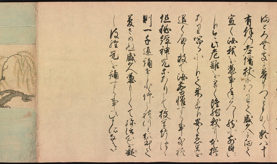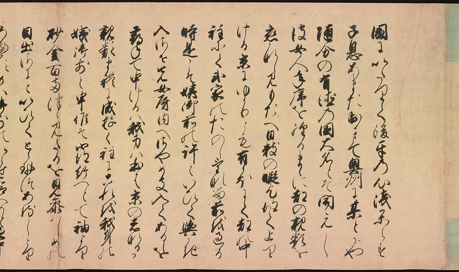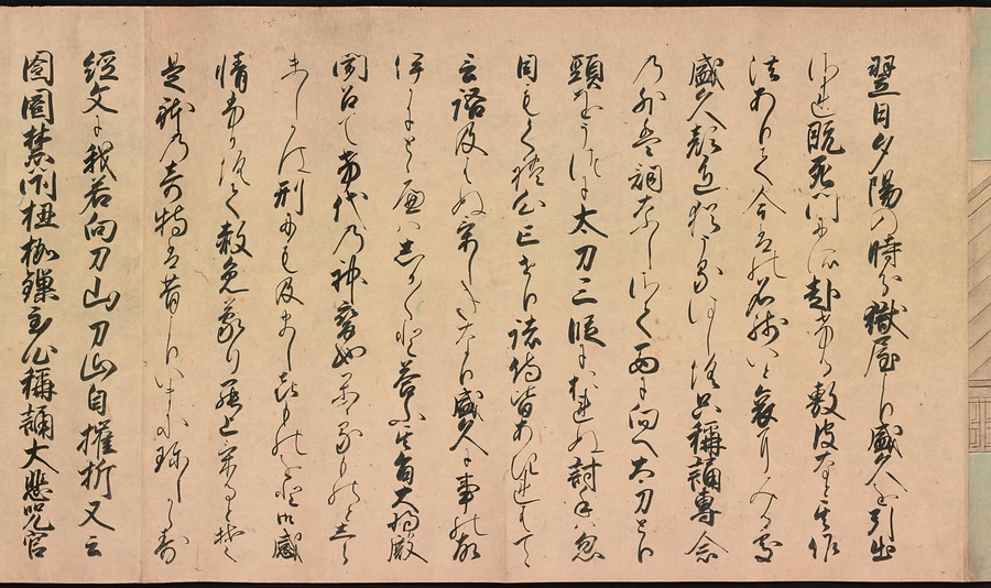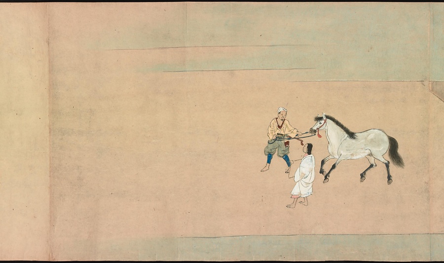 京都の清水寺の始まりとその本尊千手観音のご利益を描いた絵巻です。全部で三巻ありますが、今回展示している下巻には、本尊をめぐる霊験あらたかな物語が描かれています。時期によって展示される場面が異なることがありますが、冒頭からご紹介します。
