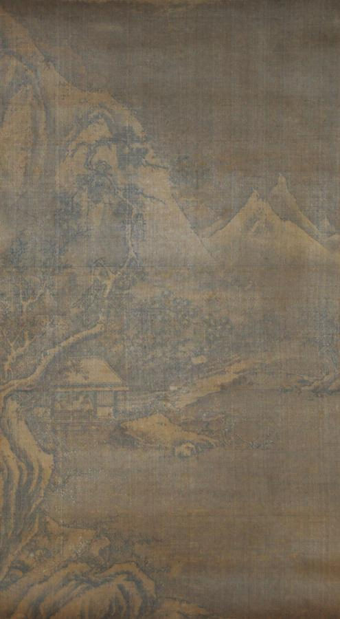 絹本墨画淡彩 雪景山水図