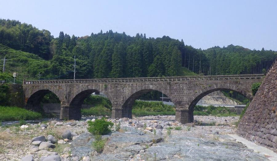大瀬橋から約一・三キロメートル下流に位置する。橋長四六メートル、径間長一二メートルの石造四連アーチ橋。石工は地元の山下佐太郎。最上流の単アーチ橋洗玉橋から本橋まで、石造アーチの径間数から「ひふみよ橋」と総称され、地域で広く親しまれている。
