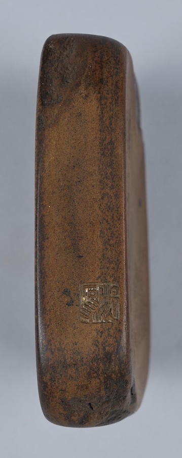 銘文:摶人余土。元気万古。河岳之精。図書之府。丁巳春為鈍居士銘。老缶。 ; 斯文未喪。土徳宜王。鈍丈得古澂泥硯製銘。命書丹姮。 ; 「沈石友」朱文方印