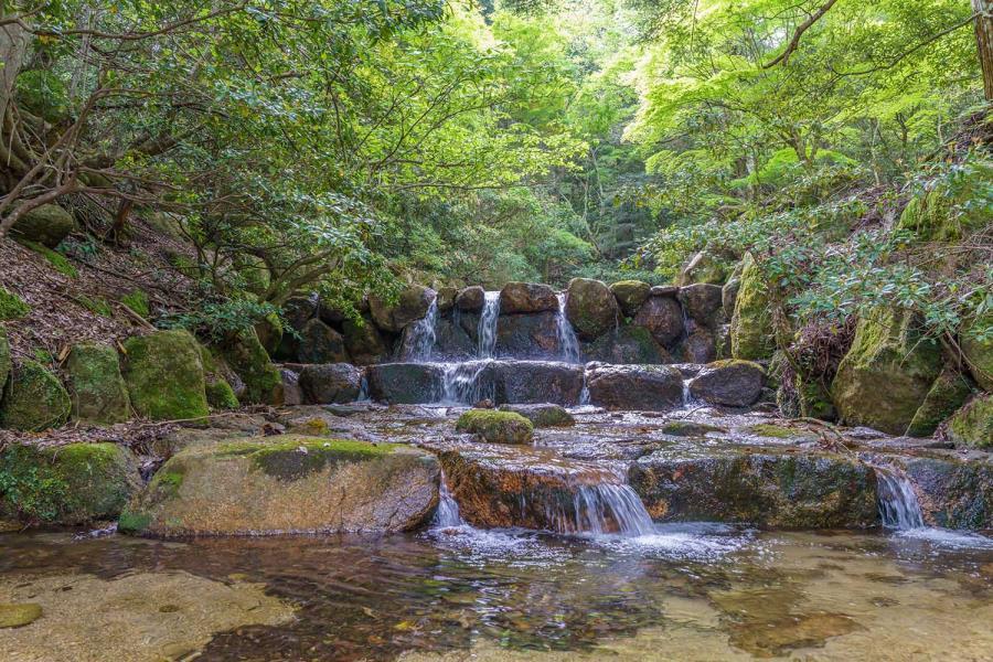 砂防と庭園の専門家の協働により,土石流によって堆積した巨石を巧みに利用しながら,紅葉の名所として知られる紅葉谷公園の風景や厳島の歴史的風致との調和が図られた砂防施設である。