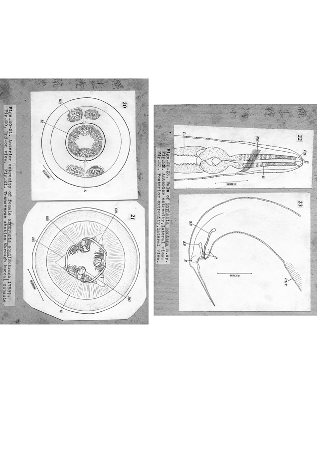 日本の寄生蠕虫相の研究,第43部.哺乳類の線虫類 IV.原図(部分)