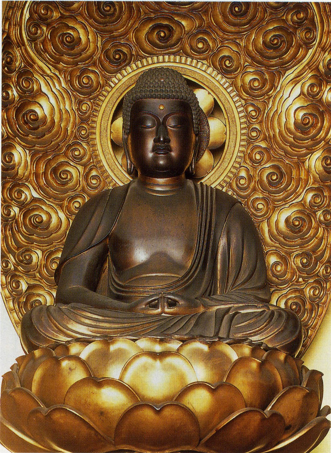 称名寺の本尊、阿弥陀三尊の主仏の伝来は不詳であるが、典型的な阿弥陀如来の坐像である。