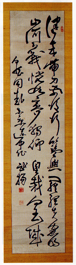この書には「健武帯刀前後行籃輿羅網失窓明山川百戦恍如夢獨仰皇裁向玉城就囚赴東京途中作武揚」とあり、東京に護送される際の心境を詠んだものである。榎本の書は晩年のものが多く、箱館戦争に関するものは少なく珍しい。