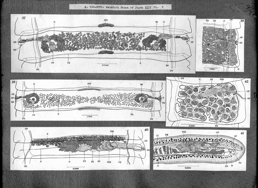 日本の寄生蠕虫相の研究,第42部.哺乳類の条虫類II.原図(部分)