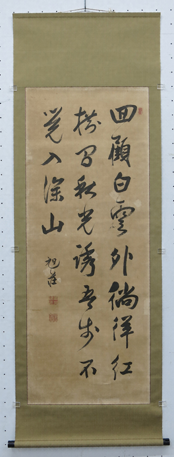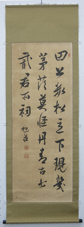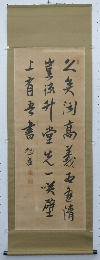 全幅共通で本紙左下に落款「旭荘」とあり、白文方印「広瀬/謙印」と朱文方印「梅墩」と印章がある。紙本墨書